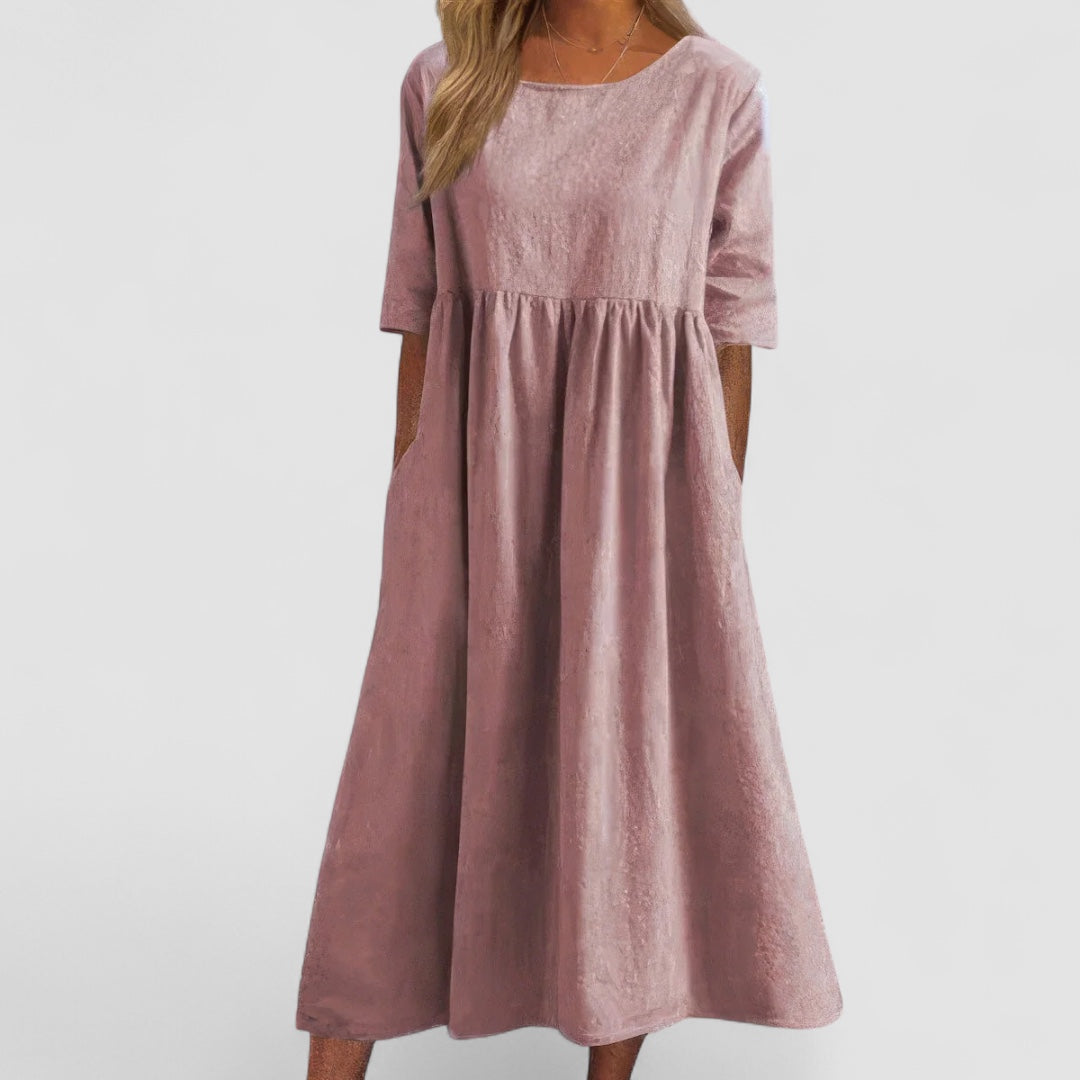 Tired of stiff dresses that don't flatter your figure? The Cotton Pocket Dress Elsa™ is the solution! With a soft fabric, flattering fit, and practical pockets, it makes your day both easy and stylish.